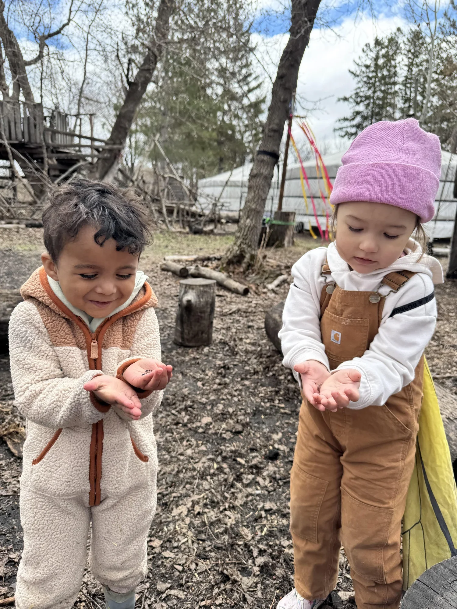 Bring your child(ren) and find out more about Apple Blossom’s approach to an unhurried childhood, preserving awe and wonder, the importance of play and movement, healthy screentime habits, mindful parenting, and outdoor learning. We provide a supportive and welcoming environment for both children and caregivers. We encourage freedom of movement and self-initiated play for the children while enjoying time with other families in our outdoor play space and yurt.